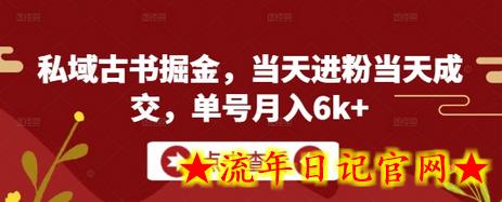 私域古书掘金,当天进粉当天成交,单号月入6k+